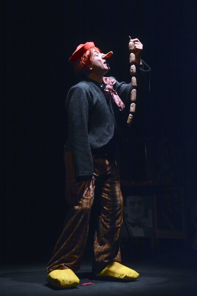 Tra un personaggio e l’altro, Ballantini si trucca a vista utilizzando una sorta di camerino aperto, recuperando anche i suoi vecchi trucchi teatrali. L’artista livornese approfondisce alcun contenuti ed osservazioni, per spiegare e dare importanza al recupero di memoria collettiva e per preservare il futuro dei comici, dalla mancanza di agganci con il passato.