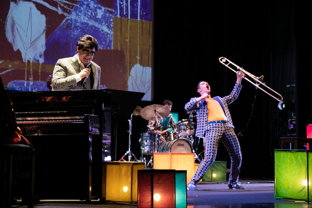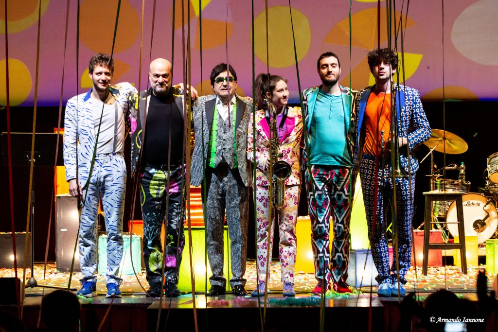 Sul palco, nella coloratissima scenografia disegnata da Giorgio Gallione, assieme a Elio ci sono cinque musicisti, i suoi stravaganti compagni di viaggio, che formeranno un’insolita e bizzarra carovana sonora. A loro toccherà il compito di accompagnare lo scoppiettante confronto tra due saltimbanchi della musica alle prese con un repertorio umano e musicale sconfinato e irripetibile, arricchito da scritti e pensieri di compagni di strada, reali o ideali, di “schizzo” Jannacci.