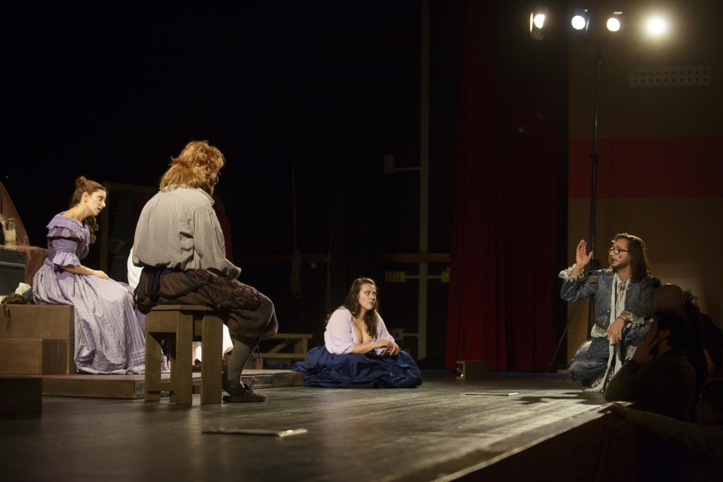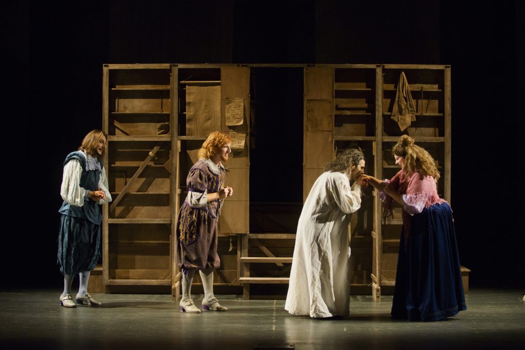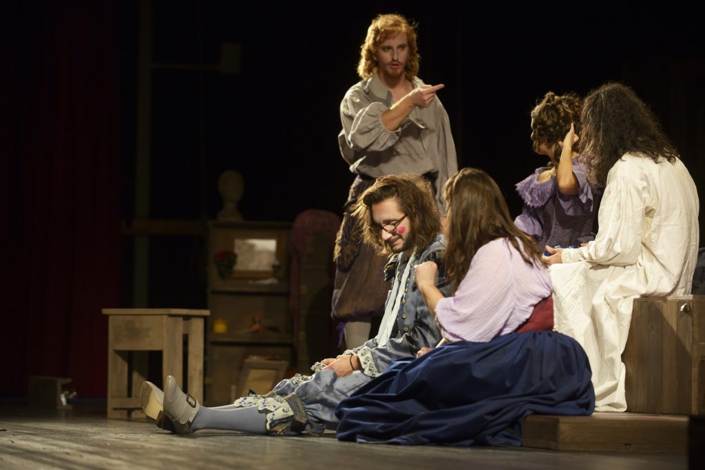 Un ultimo viaggio, ancora una volta, tra la polvere del palcoscenico, le corde, i tiri e i contrappesi. Un inno alla vita, alla risata e alla bellezza, cantato dai saltimbanco, condito di una farsa feroce, intrisa di amore per il pubblico. I testi diventano, nuovamente, pre-testi, condizioni di partenza per spiccare il salto nell’universo molieriano, giocandoci, improvvisandolo, cantandolo, mimandolo nel gioco pià totale del teatro, che deve essere vivo, estemporaneo e tangibile quanto la Commedia, specchio incrinato dell’umano.