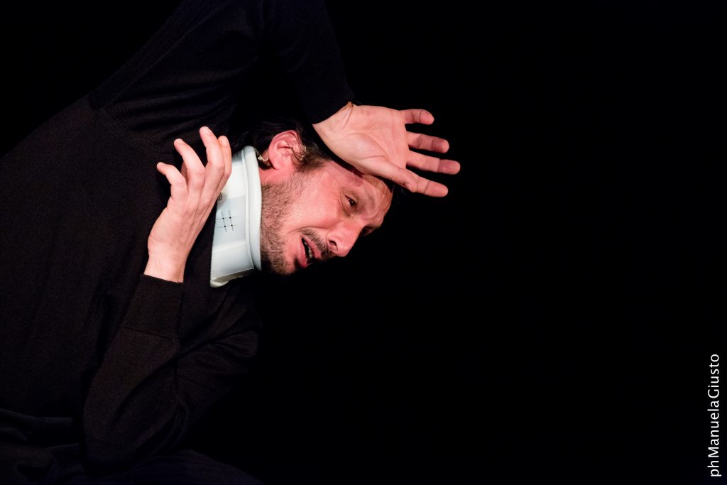 Lo spettatore di In flagrante delicto è immerso in una camera d’ascolto disegnata con cinque diffusori che compongono uno spazio acustico dinamico e intermediale: la drammaturgia delle voci, dei suoni e delle musiche dello spettacolo genera e trasforma ambienti, in un movimento continuo gestito dalla regia del suono e, tramite gli impulsi vocali, dall’attore stesso.