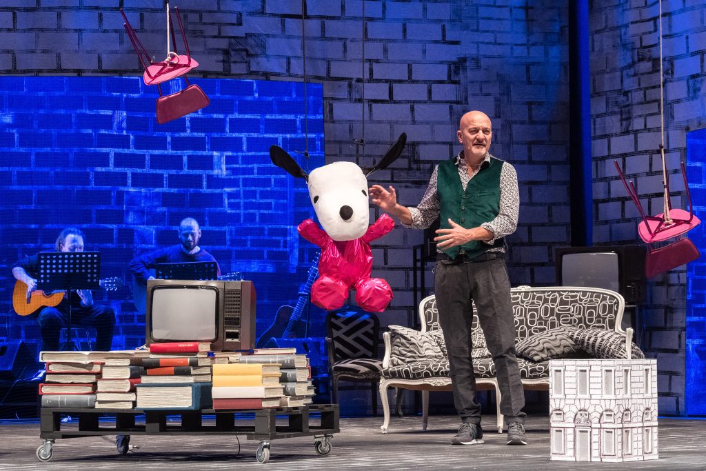 Perché la vita, sembra dirci questo viaggio agrodolce nella vita del protagonista, forse non è esattamente quella che si è vissuta, ma quella che si ricorda. E che spesso non si vive la vita come vuoi tu, ma come vuole lei. Lo spettacolo è perciò anche una indiretta riflessione sull’arte del narrare, su come il tempo modifica e trasfigura gli accadimenti, giocando spesso a idealizzare il passato, cancellando i brutti ricordi e magnificando quelli belli, reinventando così il reale nell’ordine magico del racconto. Ma, ha scritto Gabriel Garcia Marquez, le bugie dei bambini non sono altro che i segni di un grande talento di narratore. In questa tessitura variegata e sorprendente si muove Claudio Bisio accompagnato da due musicisti d’eccezione, per costruire una partitura emozionante, spesso profonda ma pure giocosamente superficiale, personale, ideale, civile ed etica.