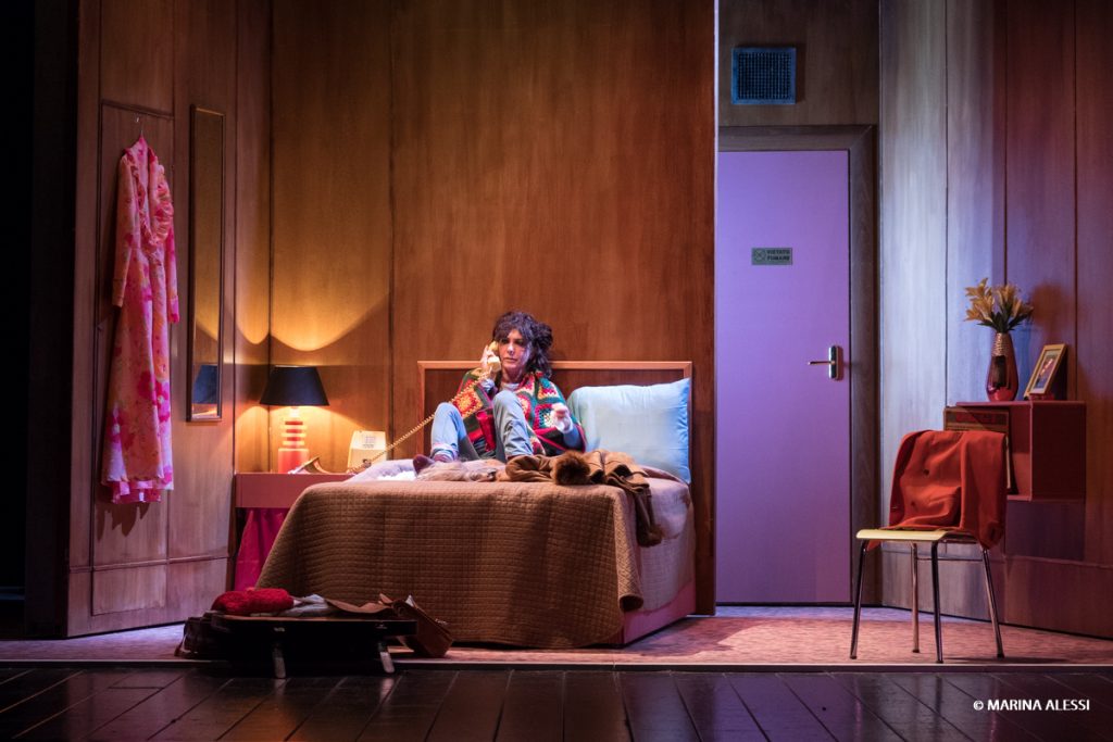 ‘La Parrucca’ e ‘Paese di Mare’ sono due atti unici di Natalia Ginzburg che sembrano l’uno la prosecuzione dell’altro. Lui, Massimo, è un uomo perennemente insoddisfatto, passa da un lavoro all’altro ma vorrebbe fare l’artista. Lei, Betta, è una donna ingenua, irrisolta, che si deprime e si annoia facilmente, e tuttavia è genuina come solo i personaggi della Ginzburg sanno essere. Da uno squallido appartamento in affitto, attraverso uno sgradito trasloco e approdando infine in un piccolo albergo isolato, la quiete vita della coppia è turbata dalle velleità artistiche di lui, almeno finché al telefono Betta non confessa alla madre un segreto sorprendente…