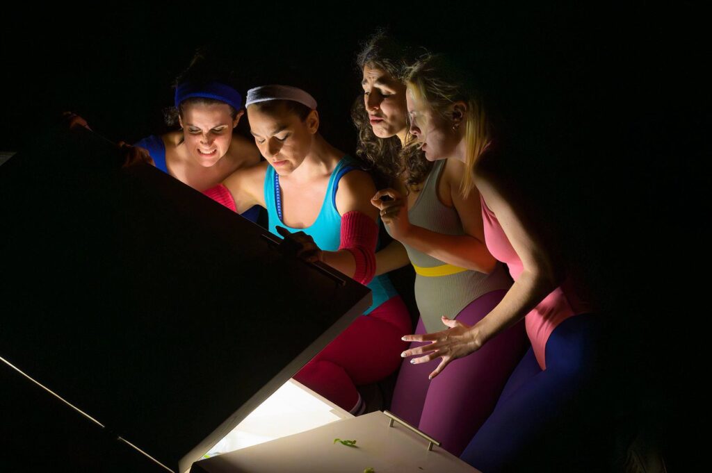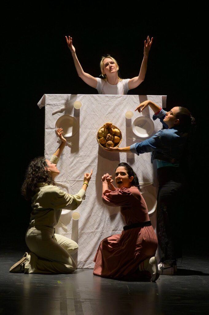 Una bulimica, una mangiatrice compulsiva, una ragazza sicura di sé e una cronicamente magra. Quattro attrici e un frigorifero travolgono e trascinano il pubblico in un dialogo a più voci sui corpi in scena, in platea e nella vita.