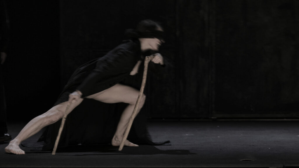 Privato della vista esteriore finalmente Edipo vede il suo cammino senza perdere la sua umana fragilità. Vaga nelle tenebre in cerca della sorgente di luce.