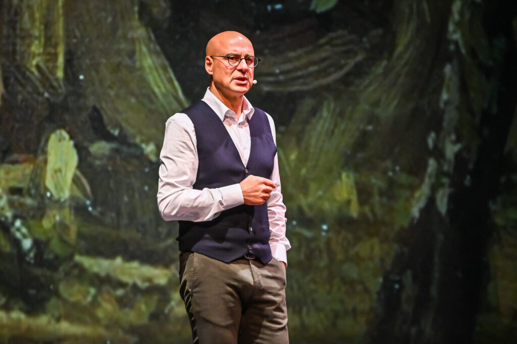 Come in tutti gli spettacoli di Marco Goldin – un esempio per tutti: il recente e fortunato lavoro sugli ultimi giorni di Van Gogh – una parte fondamentale l’avrà l’aspetto visivo, con le strabilianti animazioni e i montaggi curati da Alessandro Trettenero, su uno schermo di 6×3 metri che dominerà il palcoscenico.